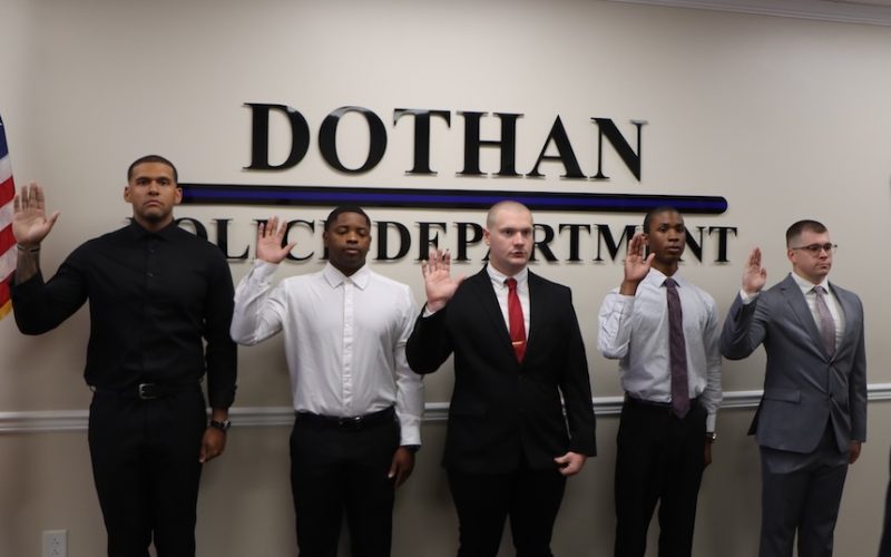 Dothan, AL – The Dothan Police Department welcomed five new officers during a recent swearing-in ceremony, marking the beginning of their training and careers in law enforcement.